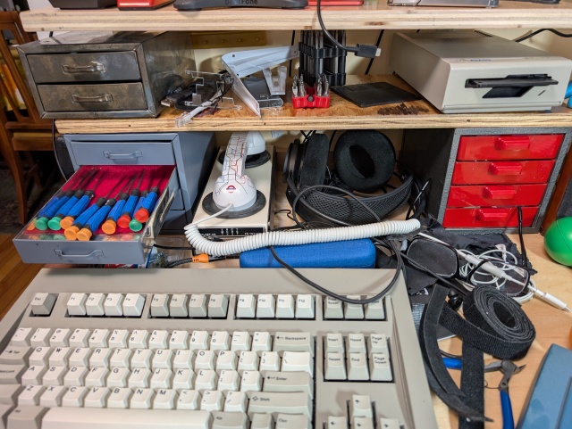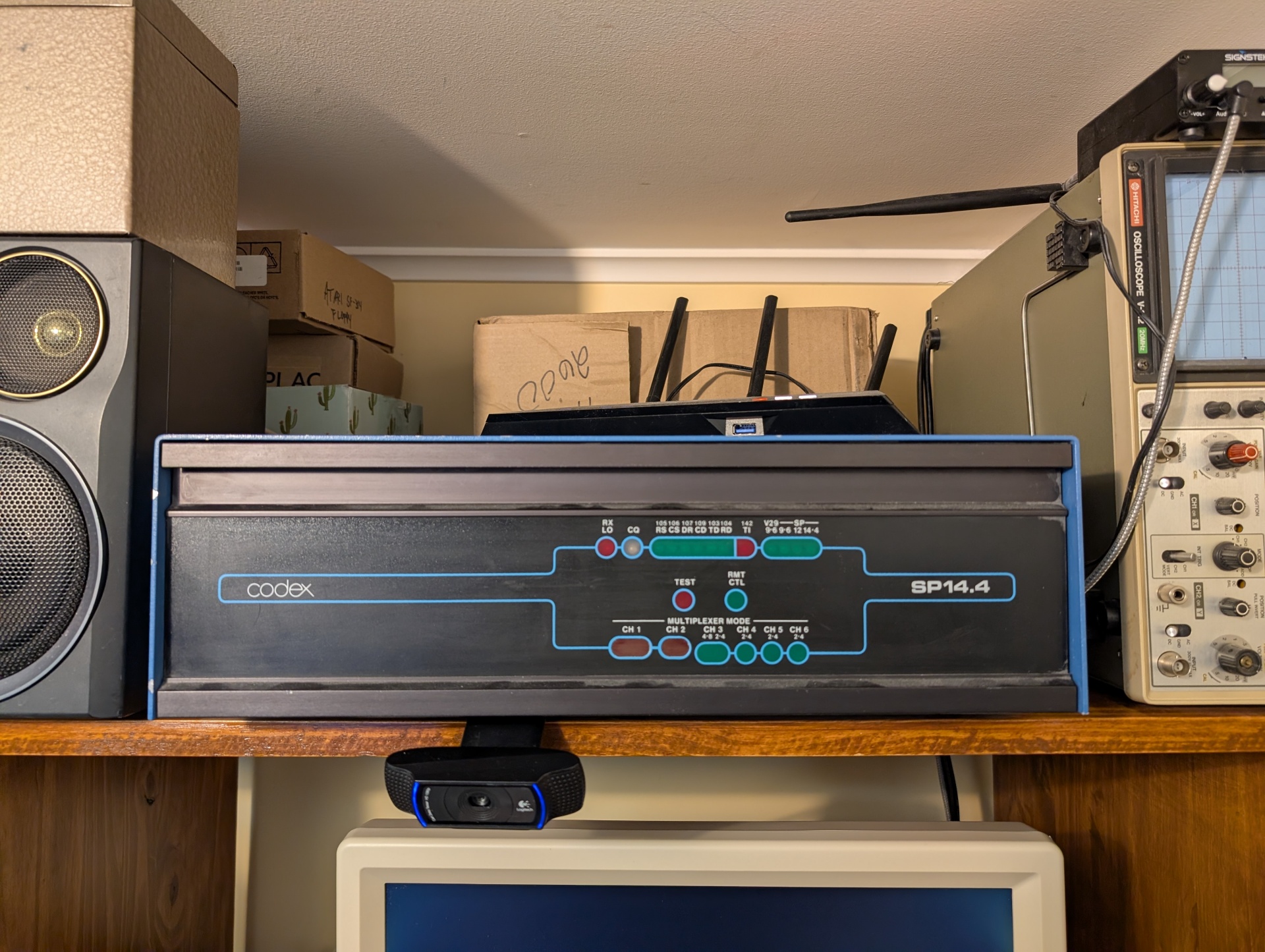 That's not the first thing in this room that I've mis-identified as a modem. Along with the Inmac, this codex SP14.4 was something I "rescued/liberated" from the computer store back room. My boss was like "blah blah serial maybe modem bank?" and so I never really looked into it. I could only find that object in a single PDF on the Internet, which was like a 1983 or 94 Motorola yearly report or upcoming guidance type document.