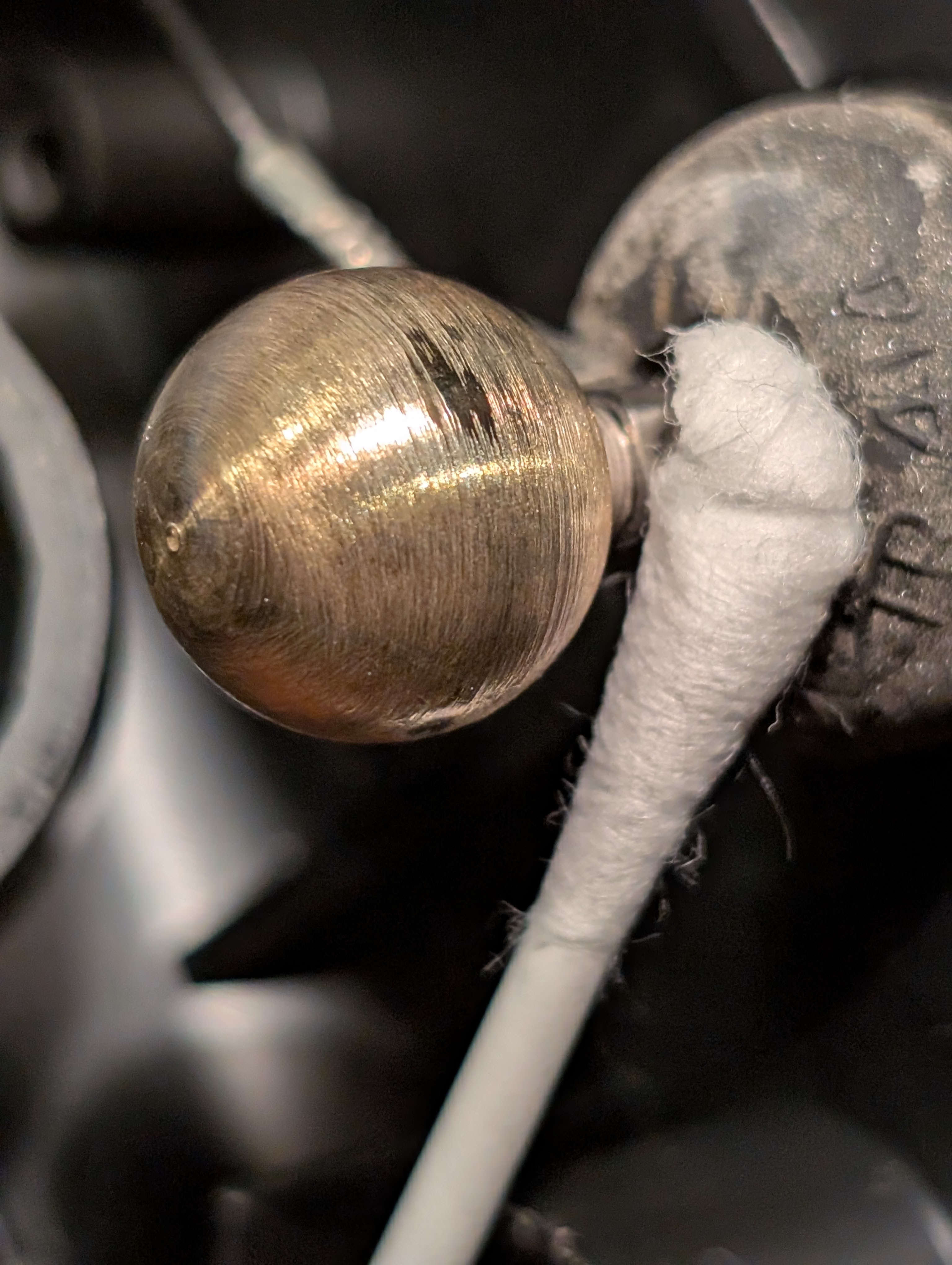 I mean, it works so I'm not going to worry about it until it doesn't work again. I'm sure we could add conductive material to that ball to make it last as-is. Maybe solder? But maybe conductive metal glue acting as bondo?