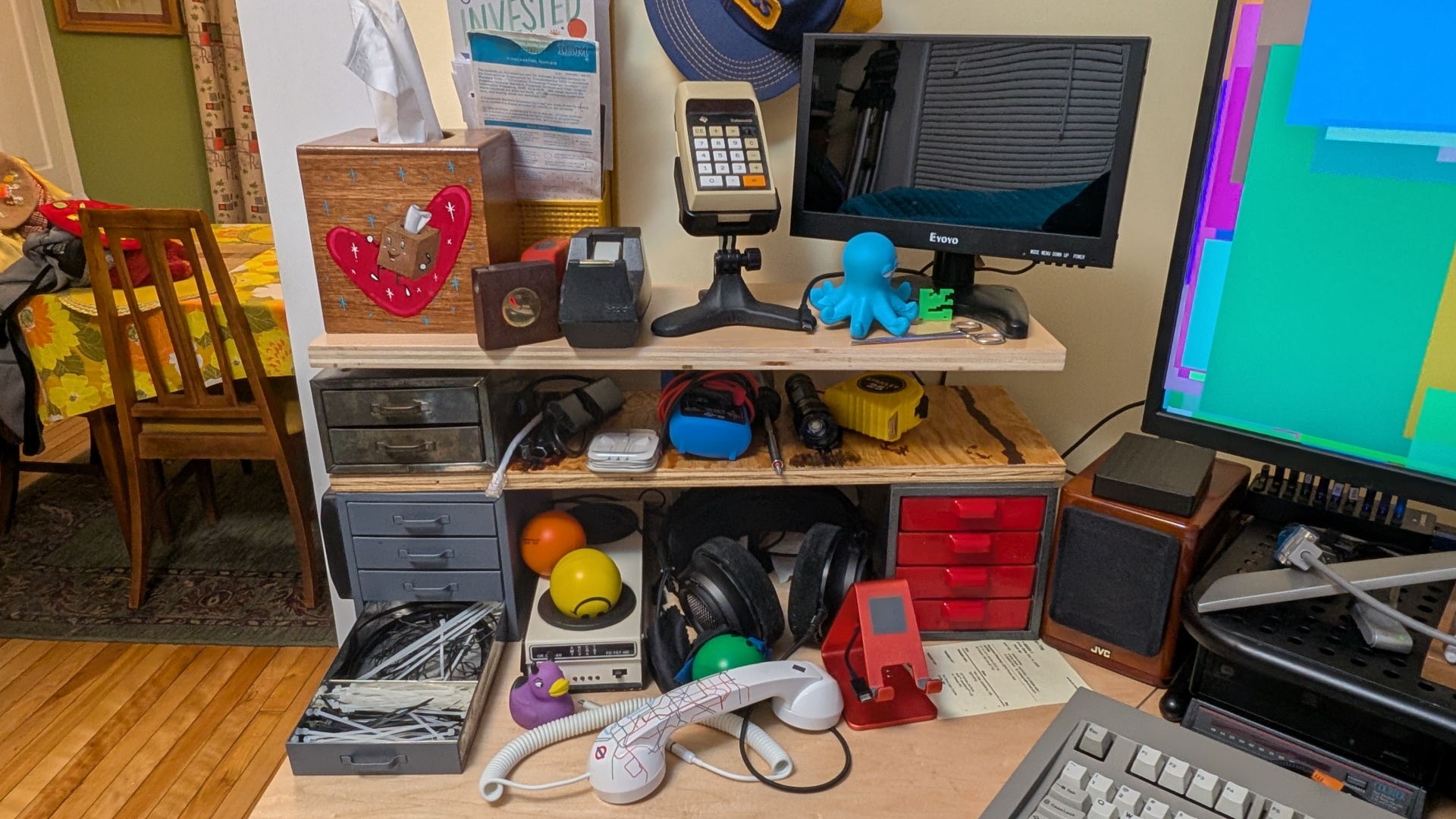 And this is a sneak peek at what I mean when I say "I have a lot of projects in mind for this CheckMate monitor". I'm waiting for one sort-of crucial piece to this puzzle, then I'm going to make an in-depth tour of how I run all of this stuff, from media services to radio broadcasts. I'll be upgrading and making a lot of sysadmin improvements now that I have been freed for a bit. Retro computers are a piece, but are not really the "purpose" of this pile of stuff. My talents lie elsewhere. Fun times ahead as I embrace my inner digital hermit! I will explain why that is a good thing.