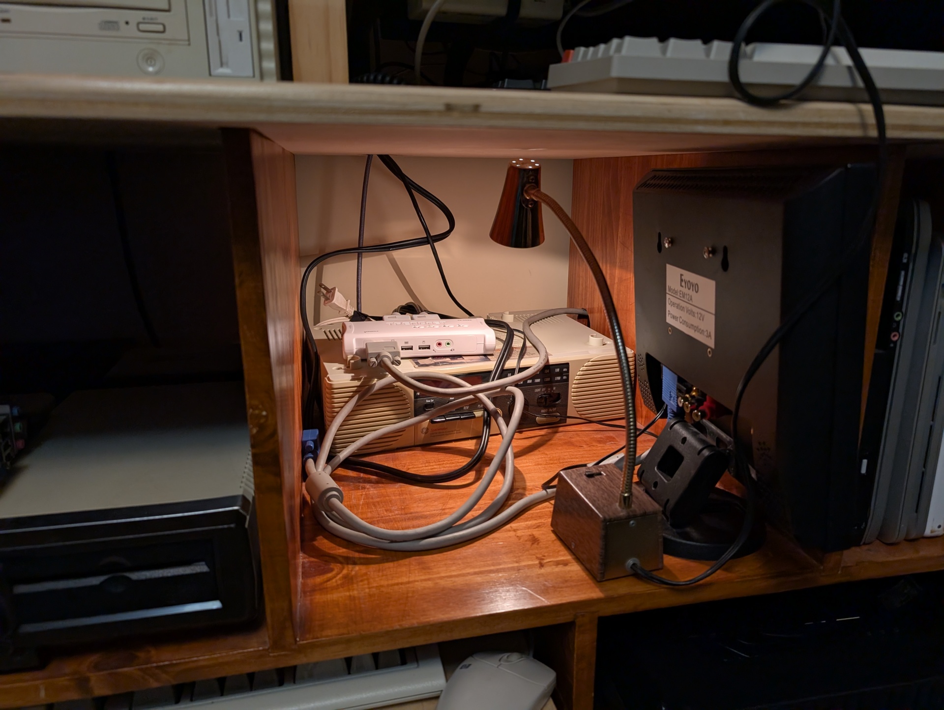 And this is a sneak peek at what I mean when I say "I have a lot of projects in mind for this CheckMate monitor". I'm waiting for one sort-of crucial piece to this puzzle, then I'm going to make an in-depth tour of how I run all of this stuff, from media services to radio broadcasts. I'll be upgrading and making a lot of sysadmin improvements now that I have been freed for a bit. Retro computers are a piece, but are not really the "purpose" of this pile of stuff. My talents lie elsewhere. Fun times ahead as I embrace my inner digital hermit! I will explain why that is a good thing.
