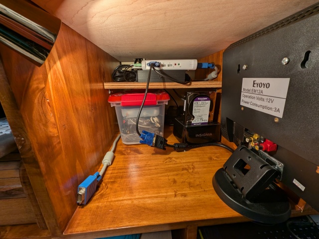 I'm building a shelf in this cubby to hold that super un-weildy VGA switcher. It's awesome but I would have paid triple the price for just 5 ports in a row rather than this octopus nonsense. It was $30, what do I want.