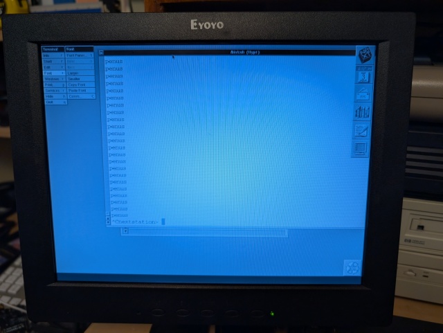 Fired right up, straight to a desktop, looked FRIGGIN' gorgeous. Sharp. This machine, while frustrating to assemble due to the "unique" decisions of Team NeXT in 1989, has been remarkably reliable. Once I understood exactly what I needed (non-ADB keyboard / mouse), spent a bunch of money, it all just worked great. Even worked great on my 4:3 Eyoyo monitor though it's understandably not as nice is the 17" CheckMate.