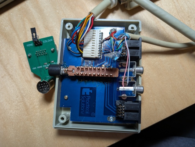 So this spurred me to try some ST stuff I've had in mind too. I wanted to try and wire straight into a Mono/Color ST switchbox with a sacrificial VGA cable and see if I can just make a color/Mono VGA switcher. I don't know if the switch is going to work but I just soldered straight onto the pins from the inbound ST cable and...